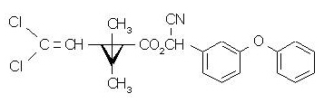 【化学名称】:(RS)-a-氰基-3-苯氧基苄基(1RS,3RS;1RS,3SR)-3-(2,2-二氯乙烯)-2,2-二甲基环丙烷羧酸酯;