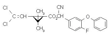 【化学名称】:(RS)-a-氰基-4-氟-3-苯氧基苄基(1RS,3RS;1RS,3SR)-3-(2,2-二氯乙烯基)-2,2-二甲基环丙烷羧酸酯